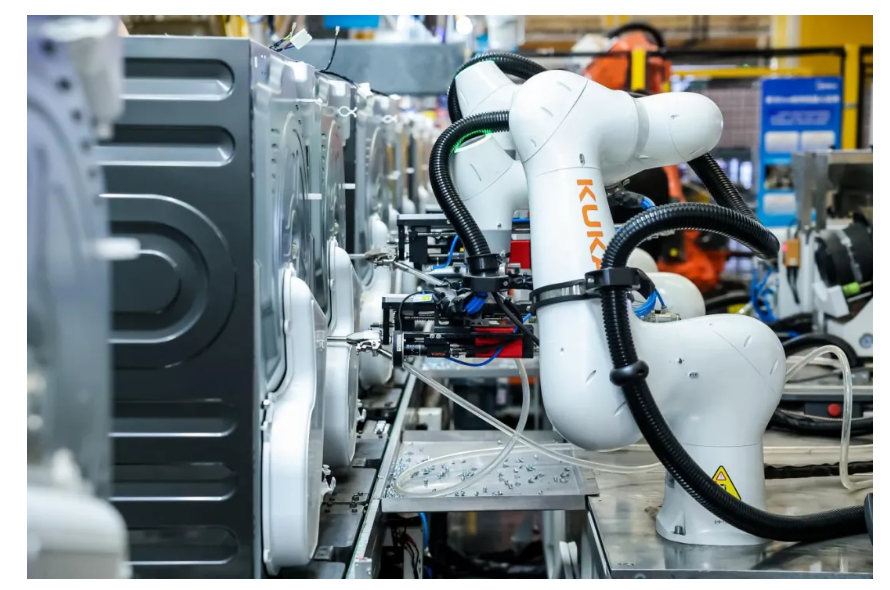 与此同时,在干衣机后盖自动锁附工站,库卡“iico协作机器人”与计划智能体深度协同,通过实时上传到工厂大脑的图片,自动解析机型特征并快速匹配多种产品型号。即便面对不同洗衣机型号的混流生产场景,工厂大脑也能实时完成机型识别,自动更新锁附螺丝的程序,实现如同人类般灵活高效的柔性化作业,让混线生产的精准度与效率得到双重提升。