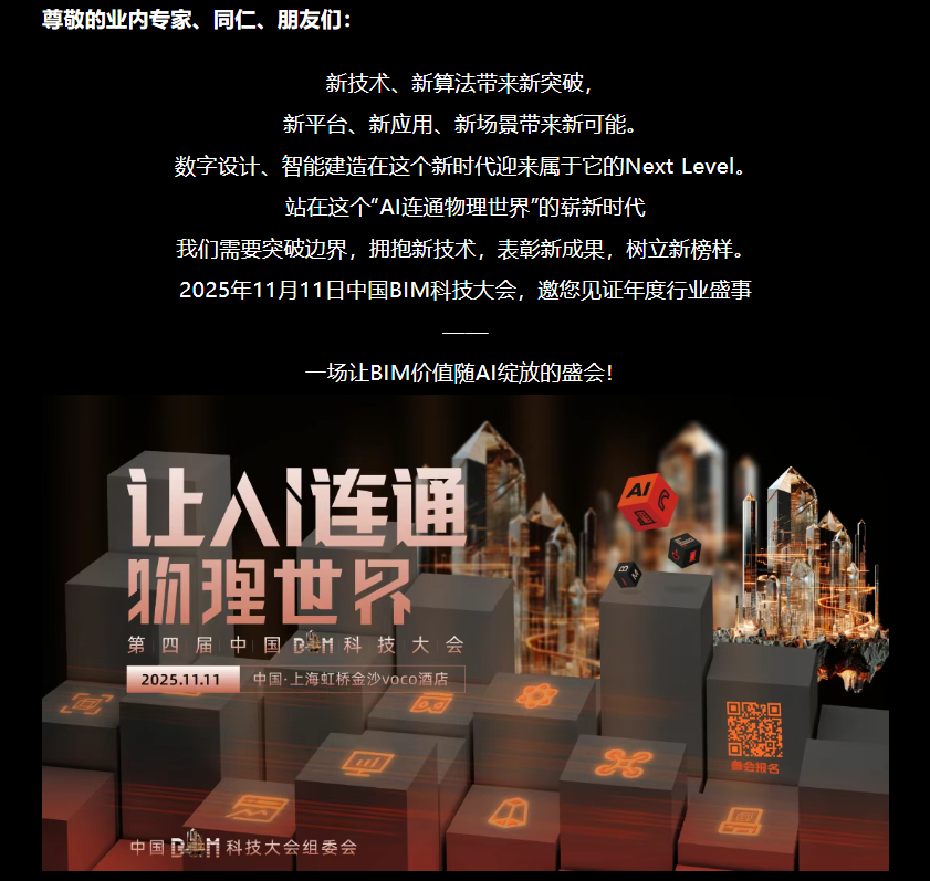 官宣!2025中国BIM科技大会正式定档,让AI连通物理世界